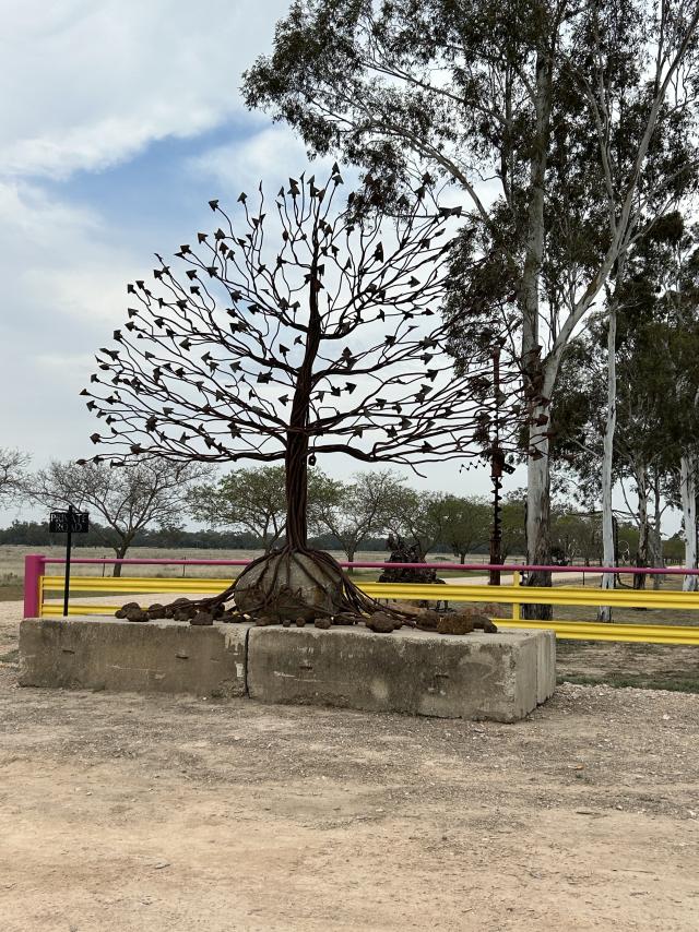 Created by local artist Angus Wilson, the piece reflects his love for reusing old materials and transforming them into striking works of art. Several of Wilson’s distinctive sculptures can be found throughout the region, celebrating both creativity and community spirit.