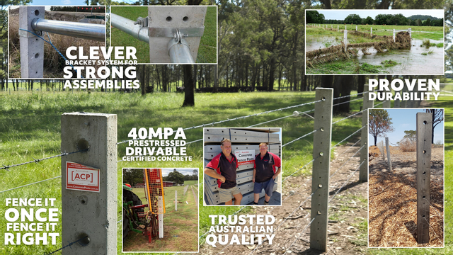 When it’s time to build or replace fences, Australian farmers can rely on ACP for a lasting investment. Fence it once, fence it right, never fence it again with Australian Concrete Posts!